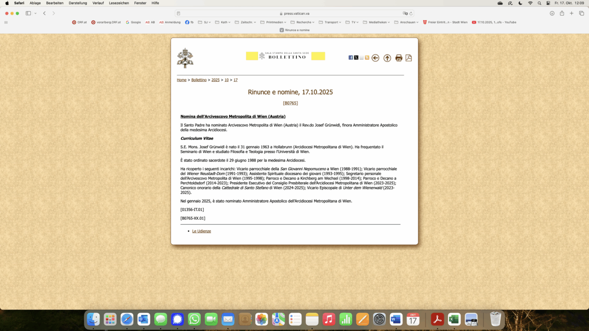 Grünwidl Ernennung wurde bereits vor drei Tagen durchgestochen. Presse und im TV berichteten. Klar war: Das Warten hat ein Ende. Der Vatikan ließ sich aber noch Zeit. Ein neuer Bischof wird in Österreich in einem Umlaufbeschluss der Bundesregierung »abgesegnet«. Gestern war die Kabinettssitzung.
